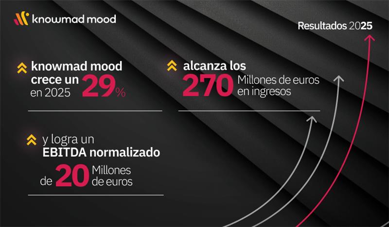 El grupo knowmad mood, multinacional tecnológica española líder en transformación digital y cotizada en BME Growth desde diciembre de 2022, ha publicado el informe de auditoría, cuentas anuales e información no financiera correspondientes al ejercicio 2025, destacando por el fuerte crecimiento de ingresos y EBITDA normalizado, la expansión internacional y su bajo nivel de endeudamiento.