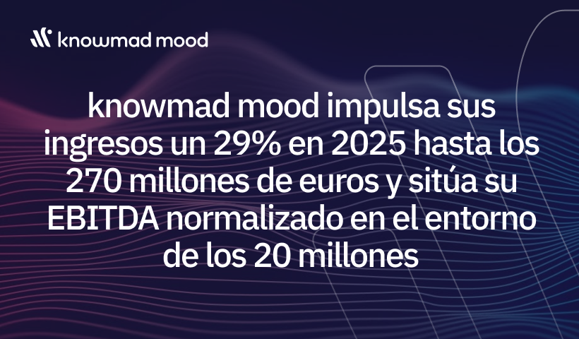 “En un año 2025 caracterizado por la reconfiguración de la economía a nivel mundial, la incertidumbre sobre las medidas arancelarias y el débil crecimiento de la economía europea, knowmad mood mantiene su impecable hoja de ruta basada en el fuerte crecimiento en los ingresos, la sostenibilidad y rentabilidad de sus márgenes y la expansión internacional. Esto queda reflejado en unos excelentes resultados de 2025, con un aumento de los ingresos del 29%, un EBITDA normalizado que se incrementa un 26% y un área internacional que ya representa más del 16% de la cifra de negocios del grupo”, declara José Manuel Rufino Fernández, Presidente y CEO de knowmad mood.